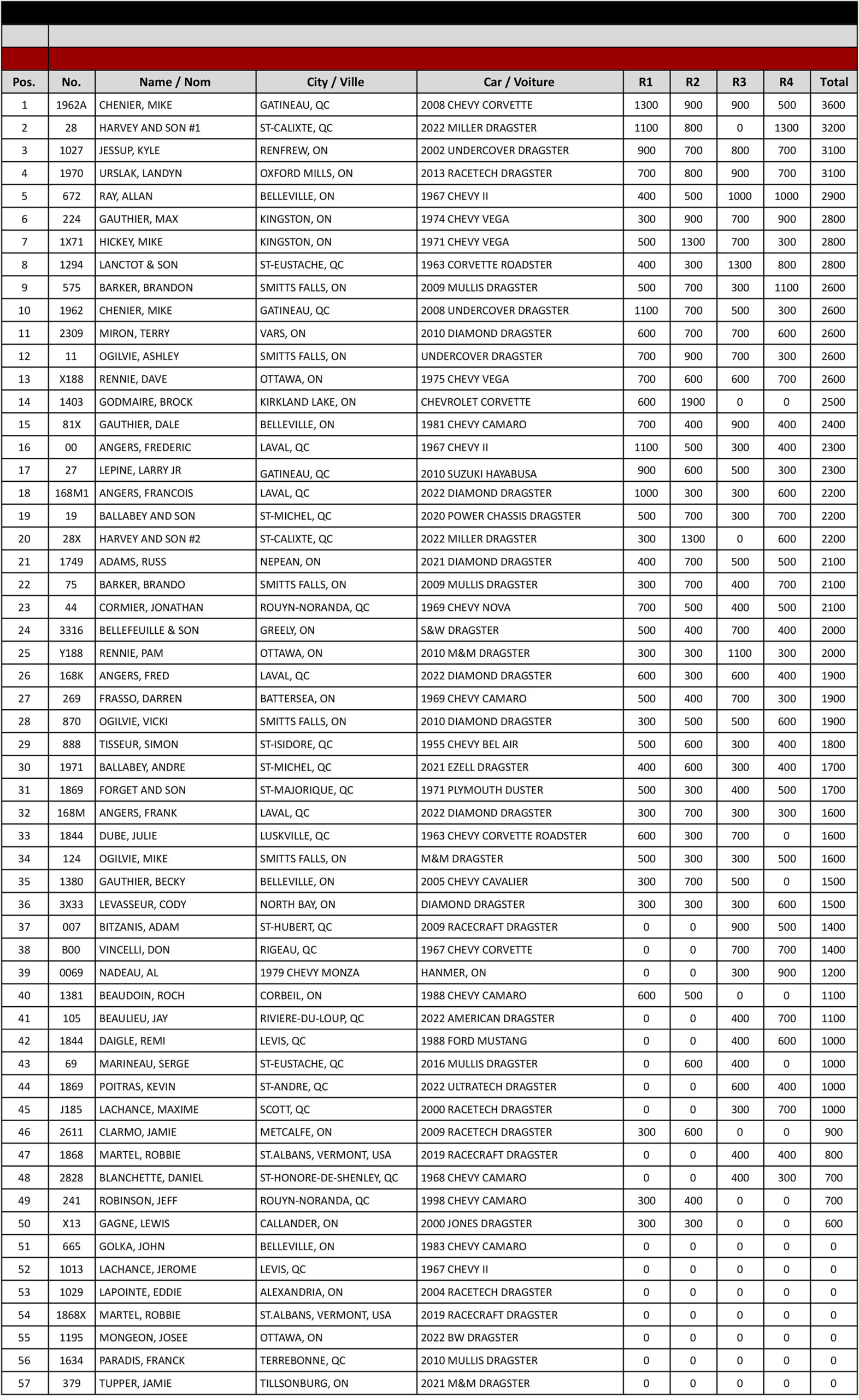 MIKE CHENIER, leader actuel des points Current Points Leader MIKE CHENIER